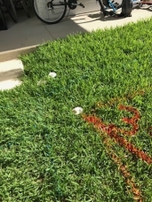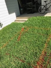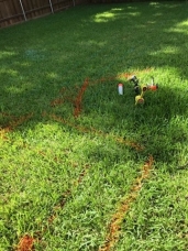 - More orange lines in the grass in preparation for a sewer line reroute