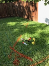 - Full plan of lines painted into grass for a residential sewer line reroute