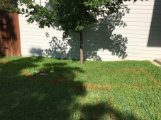 - More planning painted in the grass for a residential sewer line reroute near Fort Worth Texas
